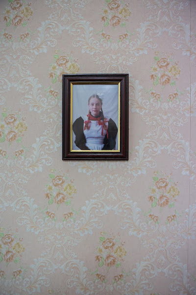 Then into the future; the rebellious teenage years and seductive poses pulled from 80s magazines, folk costumes to preserve heritage, a suitcase packed for an approaching escape. Underneath it all is the confusion, the depression, the weight of family life, the repetition of cooked meals and the dull ritual of peeling potatoes, the violent father, the oppression of society, the iron curtain, the fantasy for freedom and escape from the mundane. The sentimentality that comes with nostalgia and the pained feelings of familiarity; are the soft light of the lamps, the rosy wallpaper, the warm reds, the smiling ghosts.
